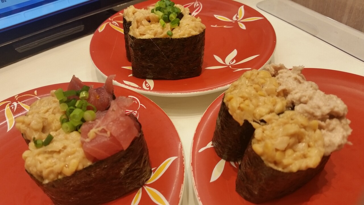 でだ、納豆軍艦とまぐろ納豆軍艦ととツナ納豆軍艦きた