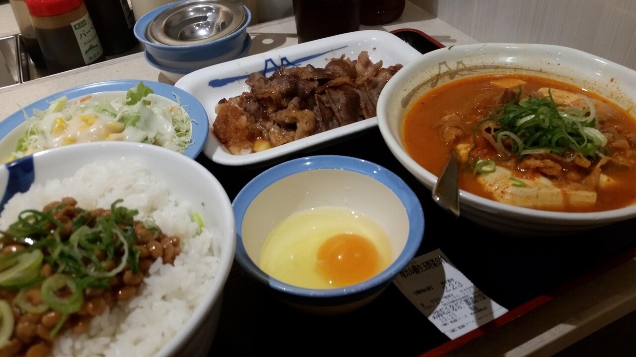 んで、増量カルビ×牛チゲ膳×納豆ごあんのお出座しだわさ