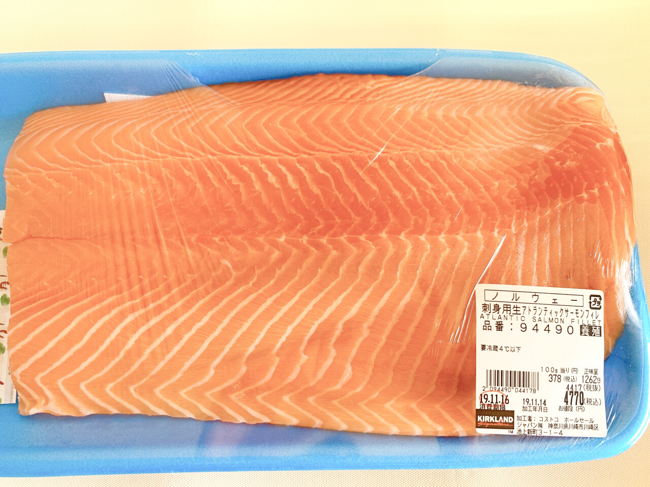 量がとんでもないけどガチのアトランティックサーモンは普通のスーパーやと100g600円とかふつうにあり得るからかなり安い方やな