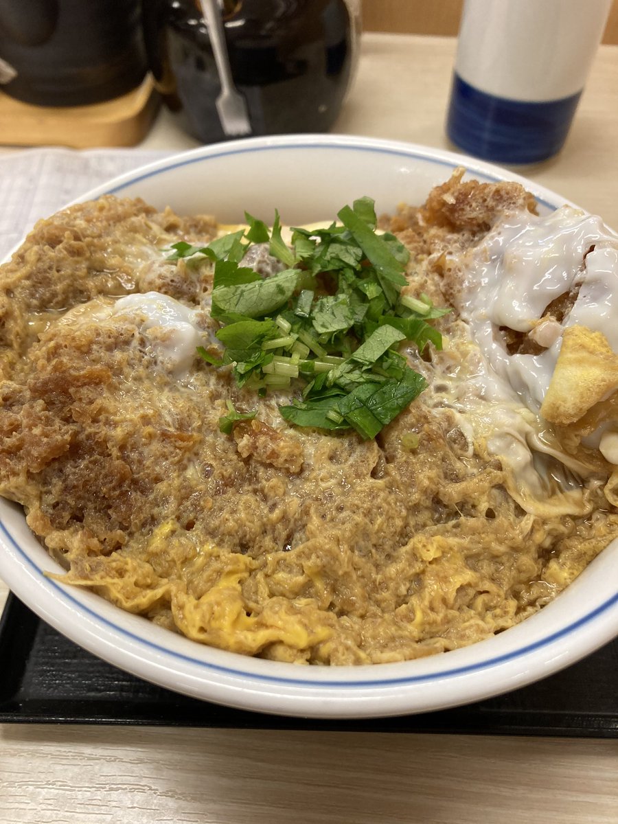 ドライブ帰りの深夜に食べるカツ丼と豚汁が染みるよね