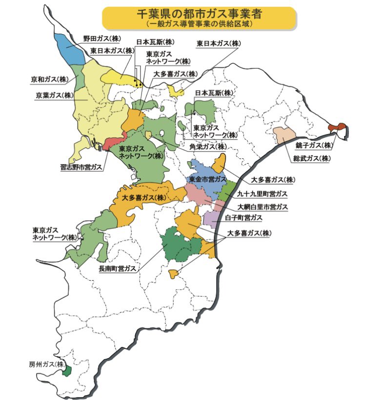 千葉県の都市ガス供給会社ってこんなにあったのか!京葉ガスと東京ガスだけだと思ってたわ。 twitter.com/ryuichisato/st… pic.twitter.com/MeYvIoxJsD
