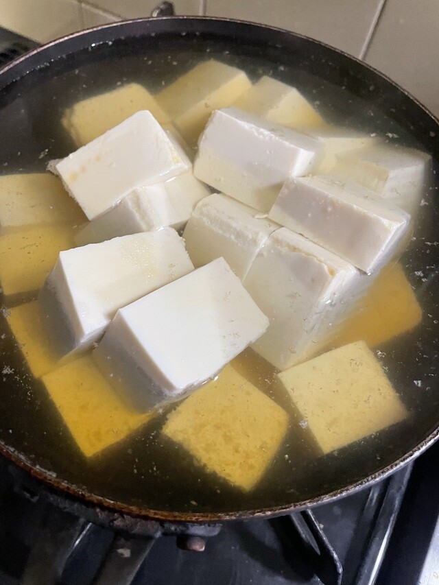 先に豆腐を下茹ですると煮崩れしにくくなるよ